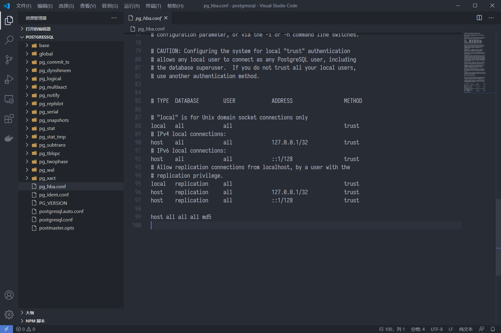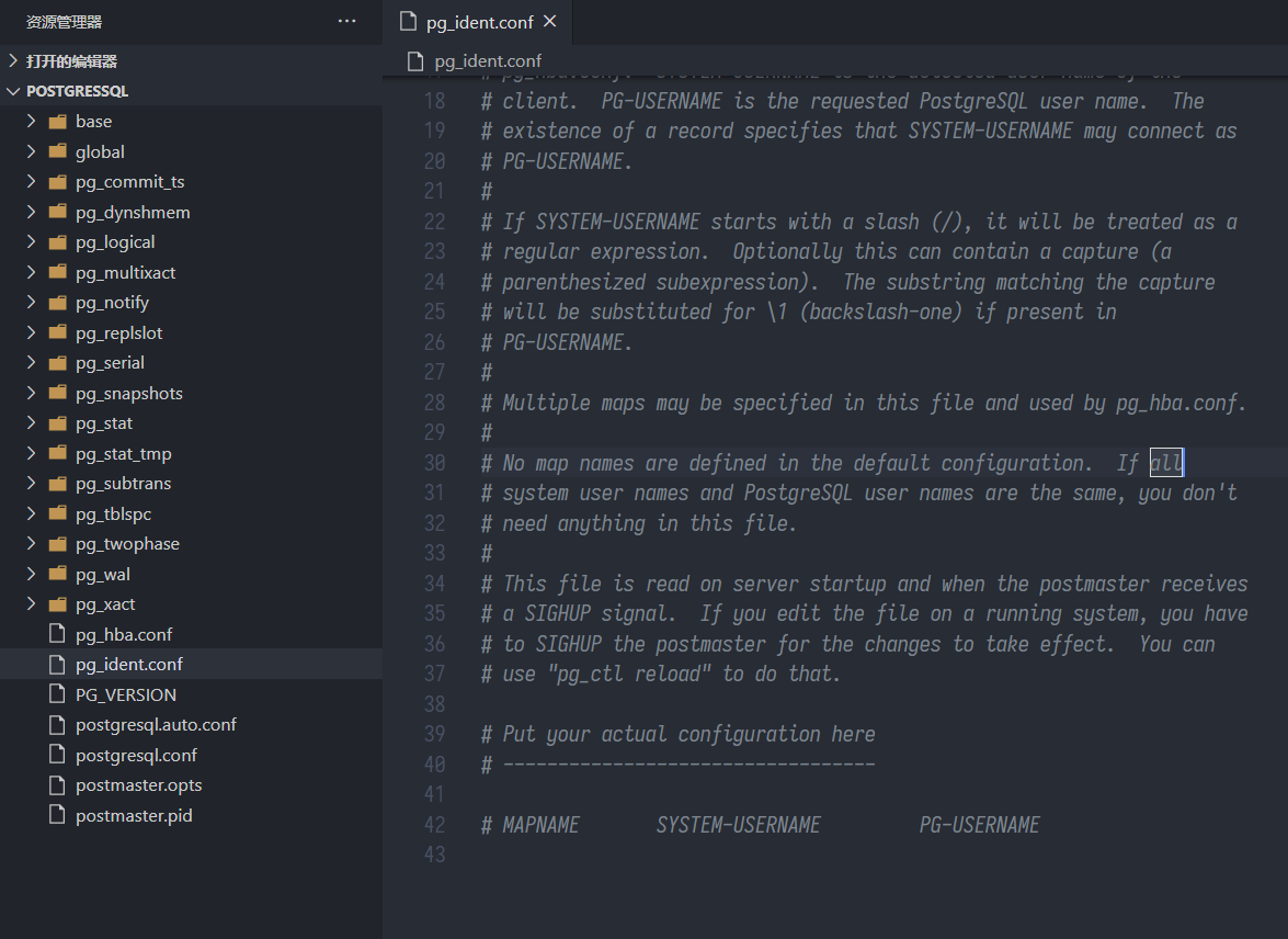 文件定义了允许登录的客户端IP、连接方式等。此外,对于PostgreSQL而言,不同的数据库之间帐户完全独立,