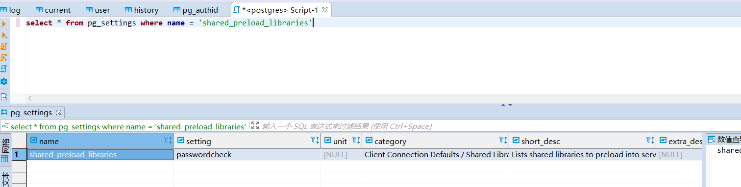 会话审计和日志收集器功能类似,可针对特定类型的操作进行日志记录,其审计对象为数据库全局。其主要变量为pgaudit.log。