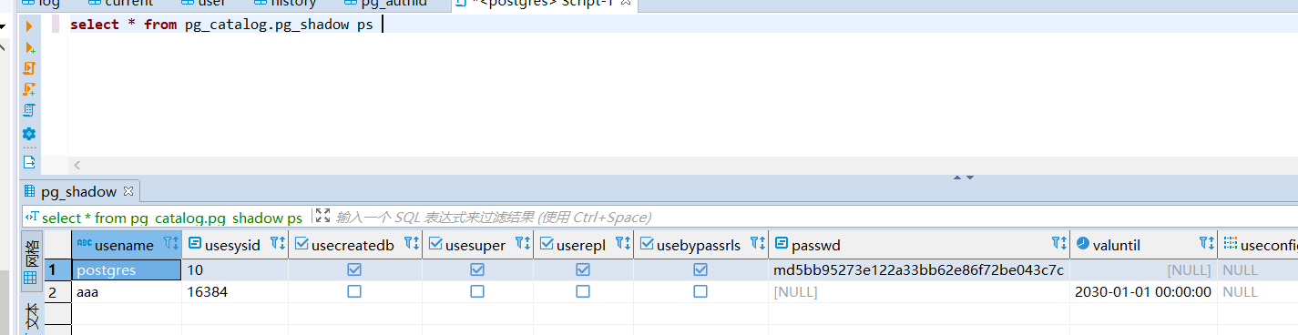 pg_catalog.pg_authid表中的记录进行比对。 -